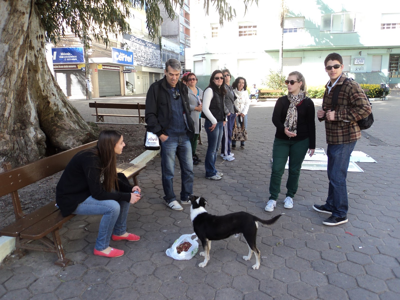 conhecia o cachorro e as pessoas que passavam faziam-lhe festinhas e ele