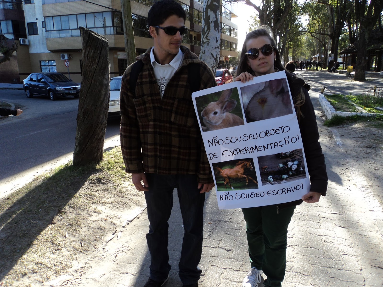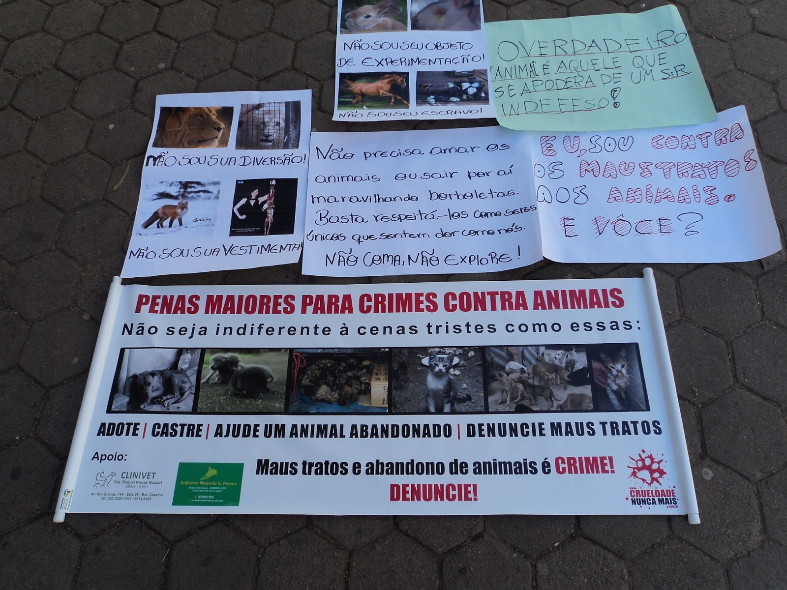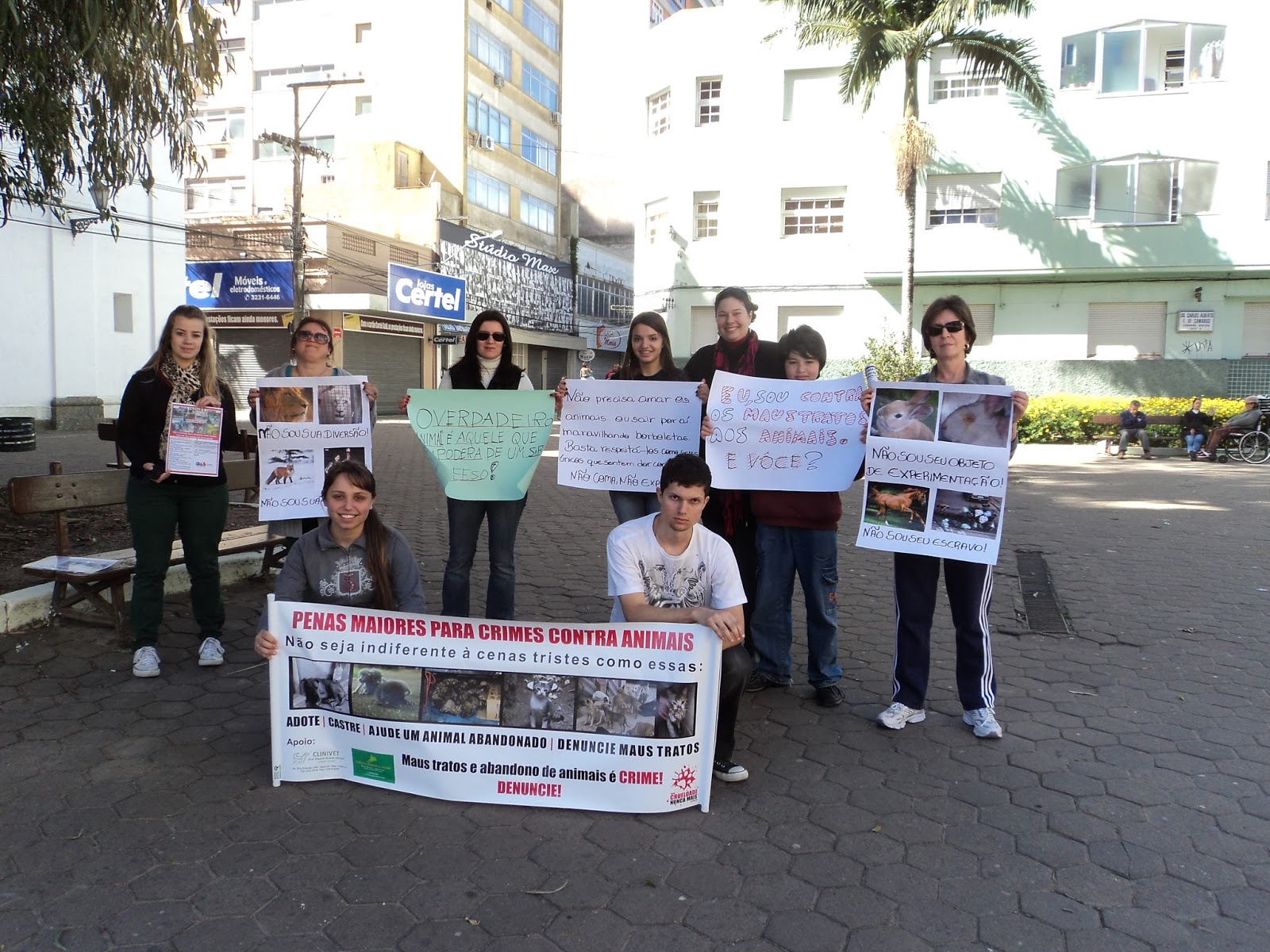 animais. A manifestação ocorreu simultaneamente na Praça Dr. Pio e no Balneário